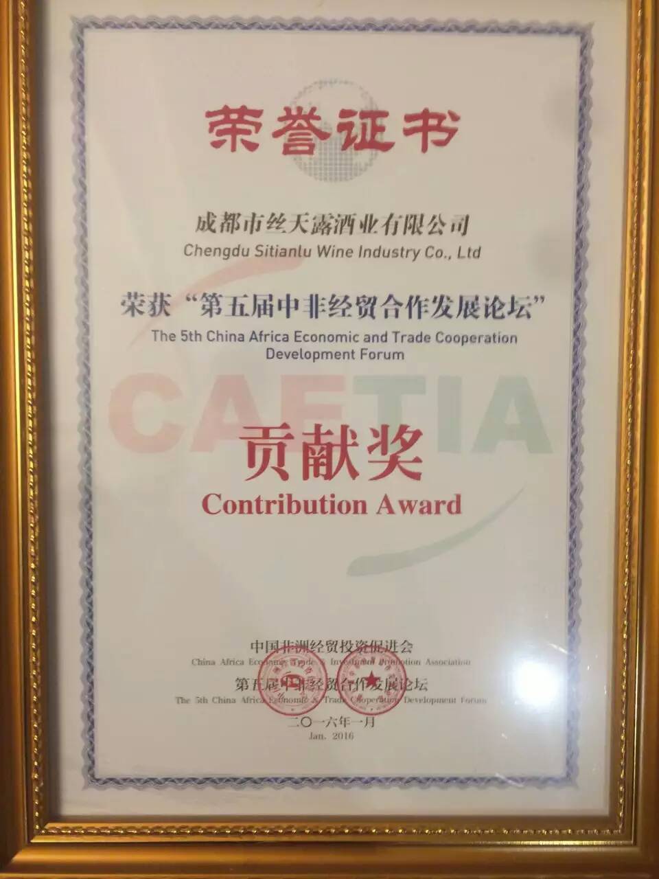 2016年1月,荣获第五届中非经贸合作发展论坛『贡献奖』